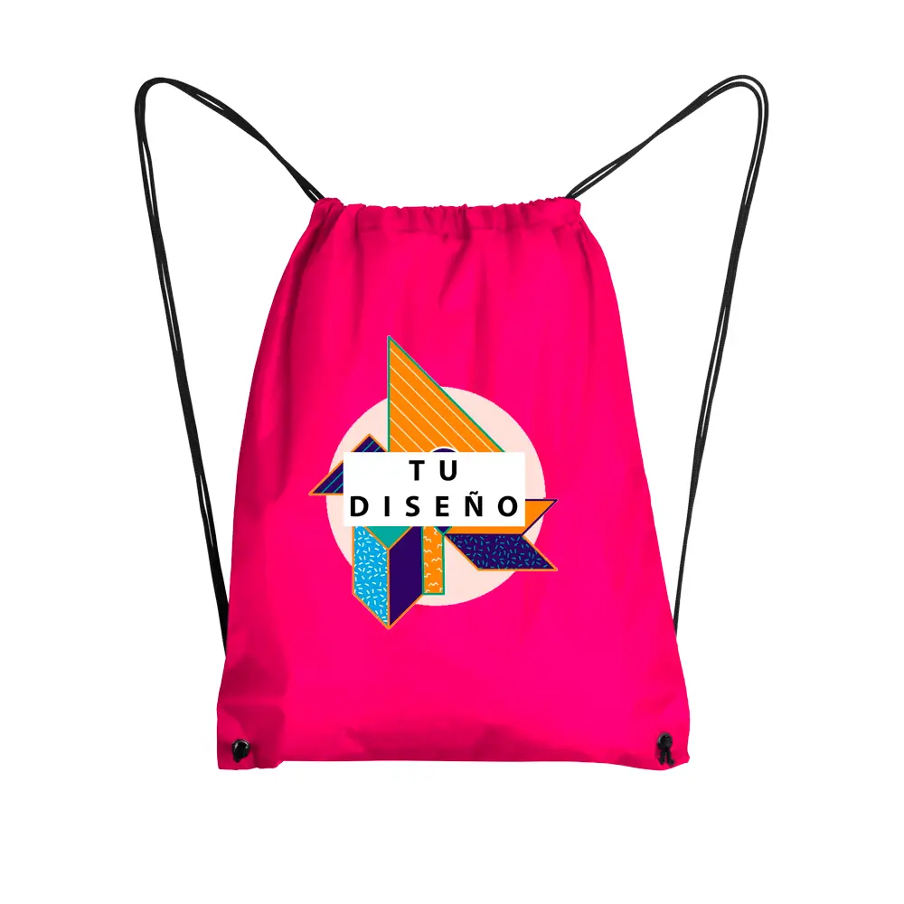 Mochila Personalizada tipo saco ideal para empresas, eventos y peñas. Solución económica, ligera y perfecta para promociones por volumen desde 10 unidades.